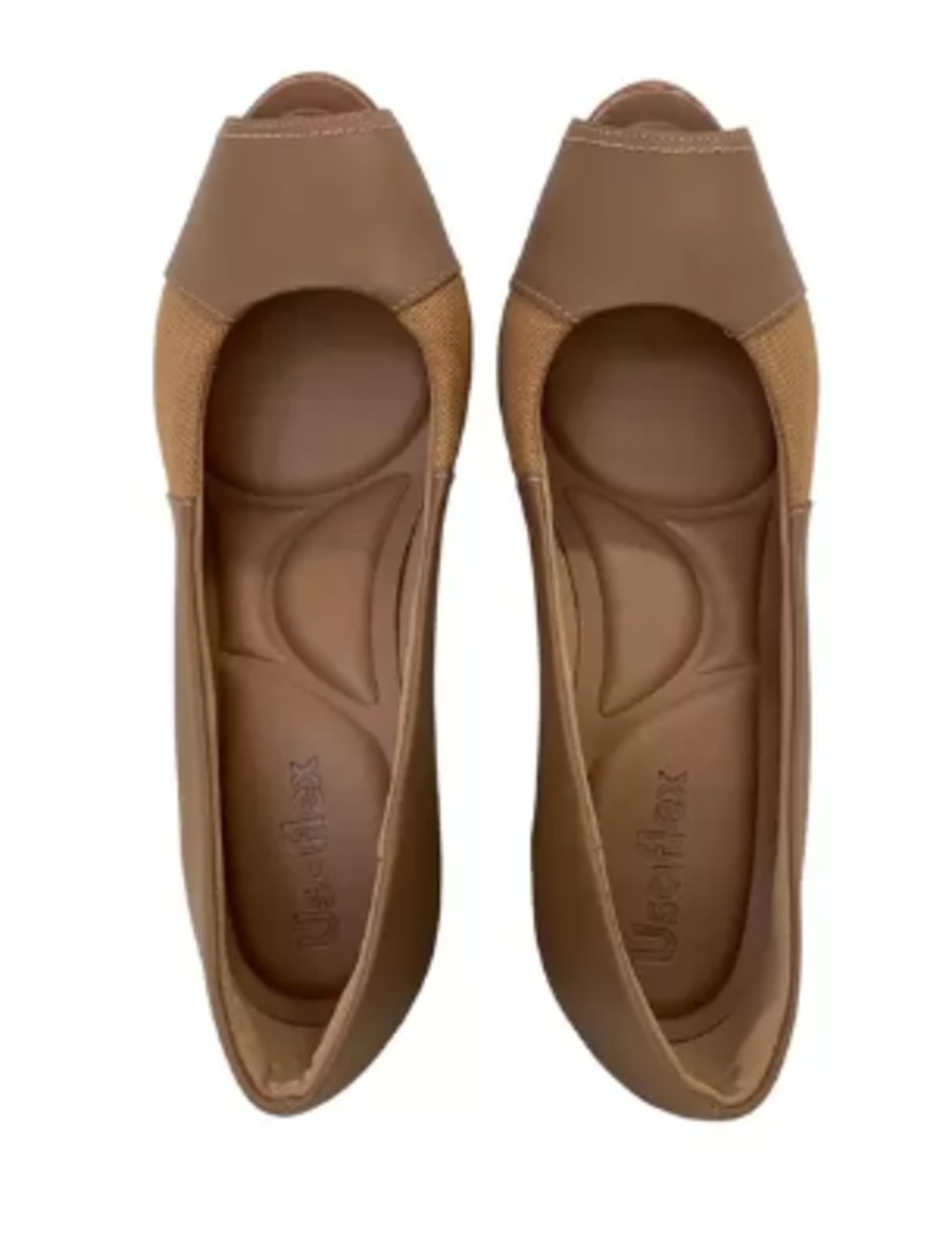Peep toe salto médio, em couro napa valise na cor camel. O modelo possui tecnologia Joanetes, que alivia o desconforto da região, garantindo suavidade na pisada por usufruir de materiais moldáveis nos pés.