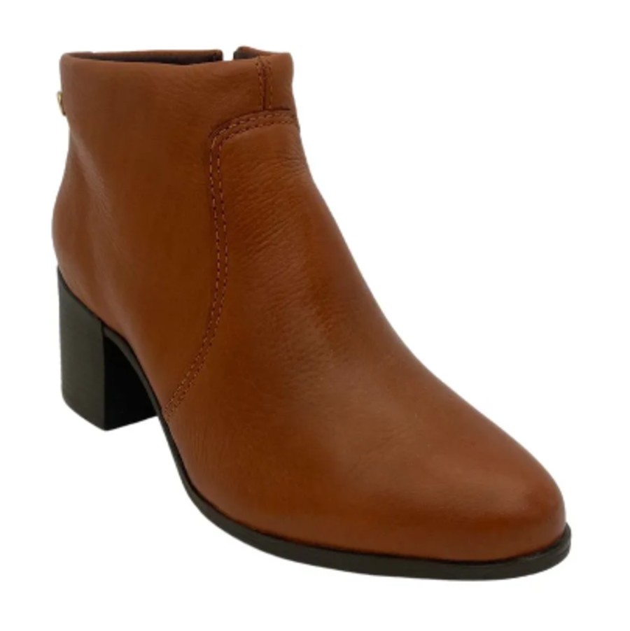Confeccionado em couro de excelente qualidade e maciez. Seu interior é produzido em tecido com toque macio. Tem salto médio bloco de 6 cm e solado produzido em borracha: flexível, leve e antiderrapante. Possui fecho para facilitar o calce e trazer mais segurança ao caminhar.